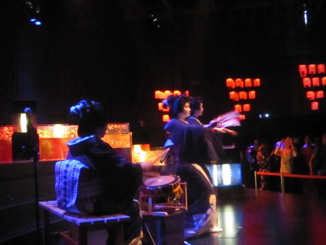 今日からECOEDO日本橋がスタート。テーマは「五感で味わう、江戸の涼」です。日本橋ではこれから様々な夏らしいイベントが行われます。中心イベントは日本橋三井ホールでのアートアクアリュームという金魚の水中アート展示。昨日はそのレセプションパーティでした。そのパーティに芸能として芳町の芸者衆に踊りを披露してもらいました。日本の伝統芸能には日本人としての根っこがあるから会場がその芸能によって日本橋を感じさせてくれるのです。