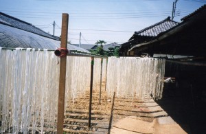 ここのお宅ではご自宅ですべての過程をこなしているとのこと。黄硫をかけないで、自然の天日干しの干瓢も作っていました。長期保存方法として黄硫を使った効能で、製品の品質を保っているそうです。