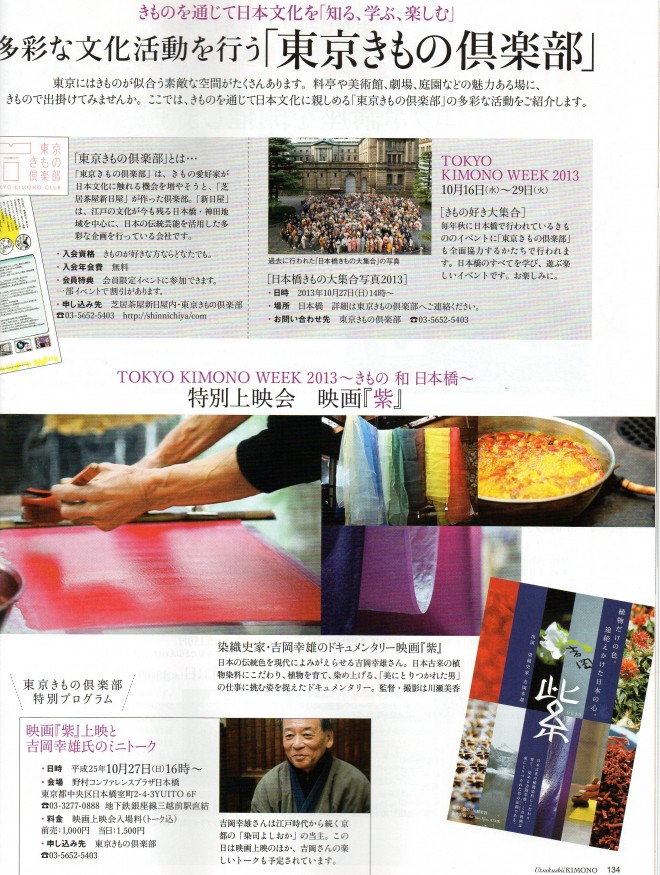 今月発売の美しいキモノ秋号に東京きもの倶楽部の紹介記事が載りました。これからTOKYO KIMONO WEEK2013に向けて益々活動を加速させていきたいと思っております。いろいろな企画をしていきますので是非ご参加ください。
