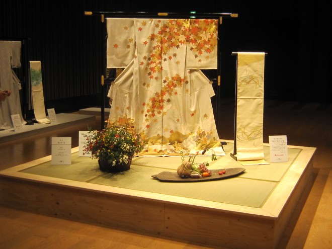 24日のイベントは日本橋三越と日本橋高島屋の着物の競演が大変見ごたえがありました。そして着物と室礼のコラボレーションは美しさをさらに引き立たせていました。そして何よりゲストの小川陽子さんと中村獅童さんのお話は楽しくもしっかりした内容でお客様に喜んで頂きました。