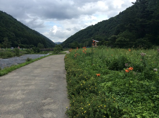 第一日目、9時に弊社の江戸遊学が開催されている日本橋のユイトに集合して頂き、一路バスにて尾瀬の玄関口の村で知られる檜枝岐村へ。今回は参加者4名の少人数のツアーでした。途中、那須で昼食を済ませ、3時過ぎには檜枝岐村に到着し、まずは第一の目的地ミニ尾瀬公園に行きました。ミニ尾瀬公園は尾瀬まで行く時間のない方や体力的に難しいお客様のための施設。檜枝岐村にある山々に囲まれる公園内は美しい花が咲いていました。色鮮やかな花は水と空気が美しい証拠。都会にいると花の美しさを忘れがちですね。