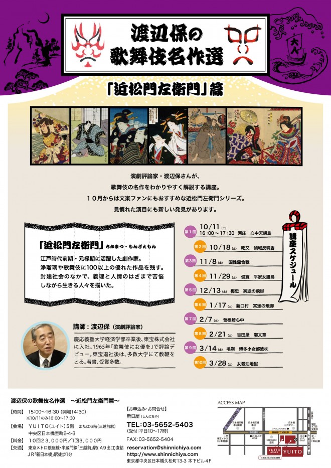 渡辺保先生の歌舞伎名作選「近松門左衛門篇」が10月よりスタート。