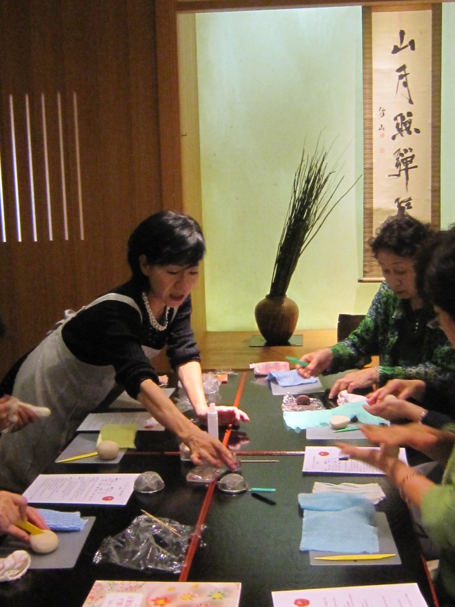 鳥居満智栄さん(創作和菓子研究家)の和菓子作り体験を開催してみました。新宿髙島屋にある桐でできた茶室「桐庵」で和菓子作り体験。今まで着付け、室礼、茶道そして和楽器と様々な企画をしてきましたがこの場所での和菓子作り体験は初の試みでした。