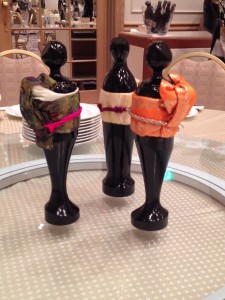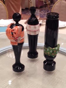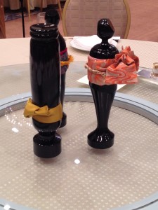 今日は笹島寿美先生の喜寿のお祝いパーティ。そのテーブルを飾ったのは、帯人形です。これは、笹島先生が考案した人形で、帯の美しさを鑑賞し、帯の結び方を伝えるもの。実物の1/4サイズの帯を人間と同じプロセスで結びます。この日のために、帯人形講座受講生の皆さんが必死に制作しました!同じものは一つもなく、それぞれの個性がでています。自分で帯を縫ったり、帯締めを組んだりする人もいて、着せ替え人形のように楽しめるそうです。