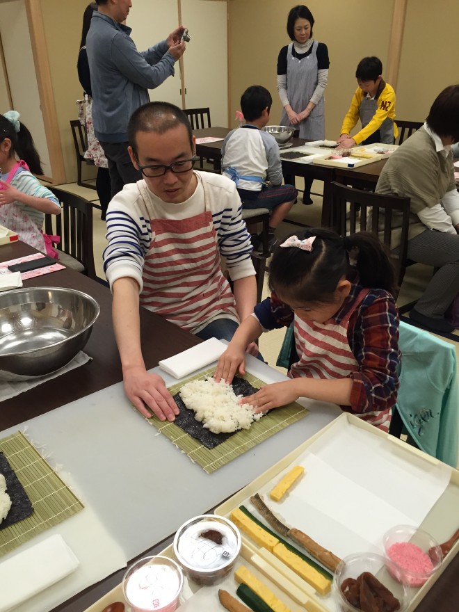 3月29日(日)は昨日の和楽器体験for kidsに続いて、矢の根寿司の寿司職人から教わる巻き寿司作り体験for kids。その後はお花見巻き寿司パーティ」を、そんな花見の季節ならではのプログラムを体験して頂きました。