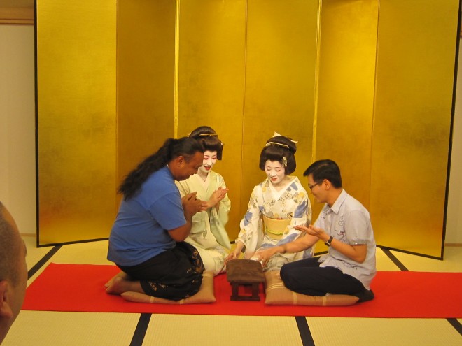 コレド室町の橋楽亭での「OMOTENASHI Experience」。今回はグアムからのお客様、フィリピンからのお客様、イタリアからのお客様、日本のお客様に楽しんで頂きました。お座敷遊びは大盛り上がりでした。