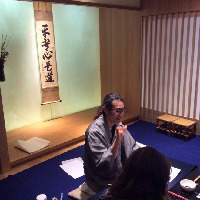 書道体験@新宿タカシマヤ内の「桐庵」。