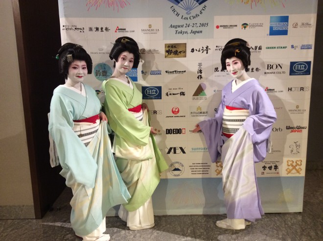 レ・クレドール アジアン コングレスが8月24日(月)から27日(木)の間に開催されました。日本のホテルに勤務するコンシェルジュがアジアのホテルコンシェルジュを日本に招き、日本を正しく理解し、それぞれの国で紹介、その魅力をアピールしてもらうために様々なおもてなしイベントを開催しました。弊社も『和のコンシェルジュ』として日本のコンシェルジュに浴衣やガラパーティでの振袖のレンタル着付けをしたり、和のエンターテインメントとして葭町芸者の舞台をコーディネートをしました。