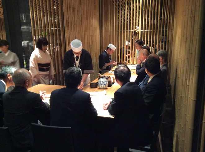 海外のVIP向け日本文化体験付き夕食会を企画しました。場所は歌舞伎座タワーの5階「寿月堂」にて。お点前のデモンストレーションに矢の根寿司の出張寿司、富士松小照師匠の新内、そして神楽坂の梅花亭の主人による和菓子作りデモンストレーションと盛りだくさんの内容でした。少し盛り過ぎたかもしれません。反省点は多くありますが、とても前向きな内容だったと思います。あとはクオリティーをあげていきたい。