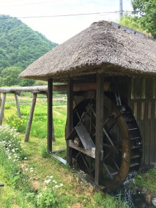 ここに流れる小川には、風情のある水車もあります。