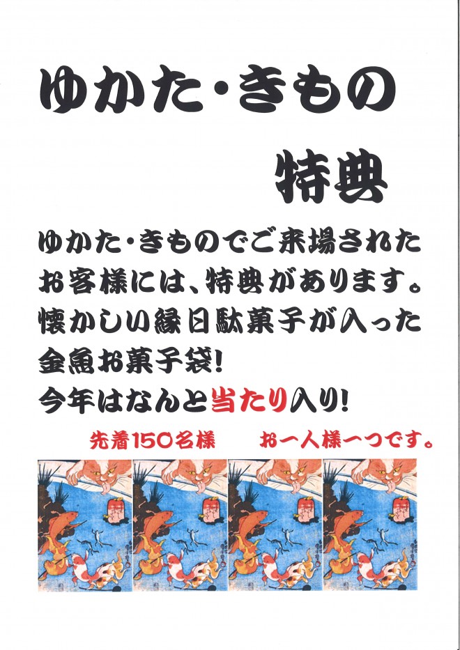 ぜひゆかた・きものでのご来場をお待ちしています!(^ー゚)ノ