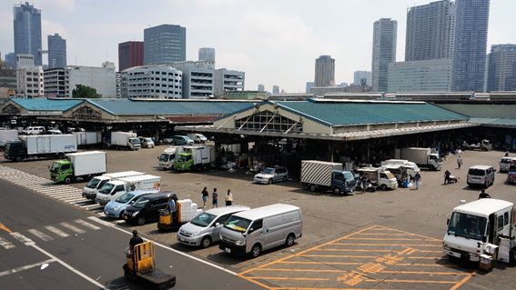 途中、青果市場の屋上から築地市場を眺めてみました