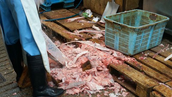 おぉ!冷凍マグロの解体が!!迫力あります!!