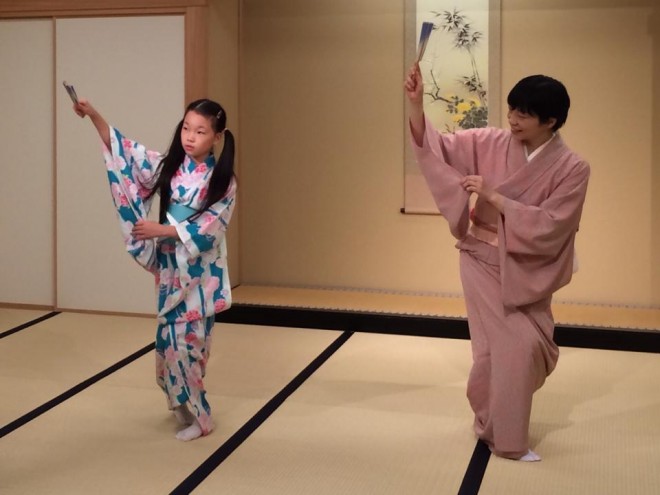 8日の、橋楽亭の日本舞踊体験教室の様子です↓