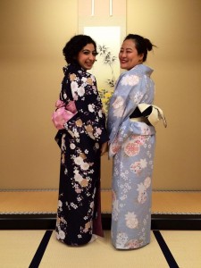 カリフォルニア在住の彼女は、きものを着るのは初めてだそうです。
