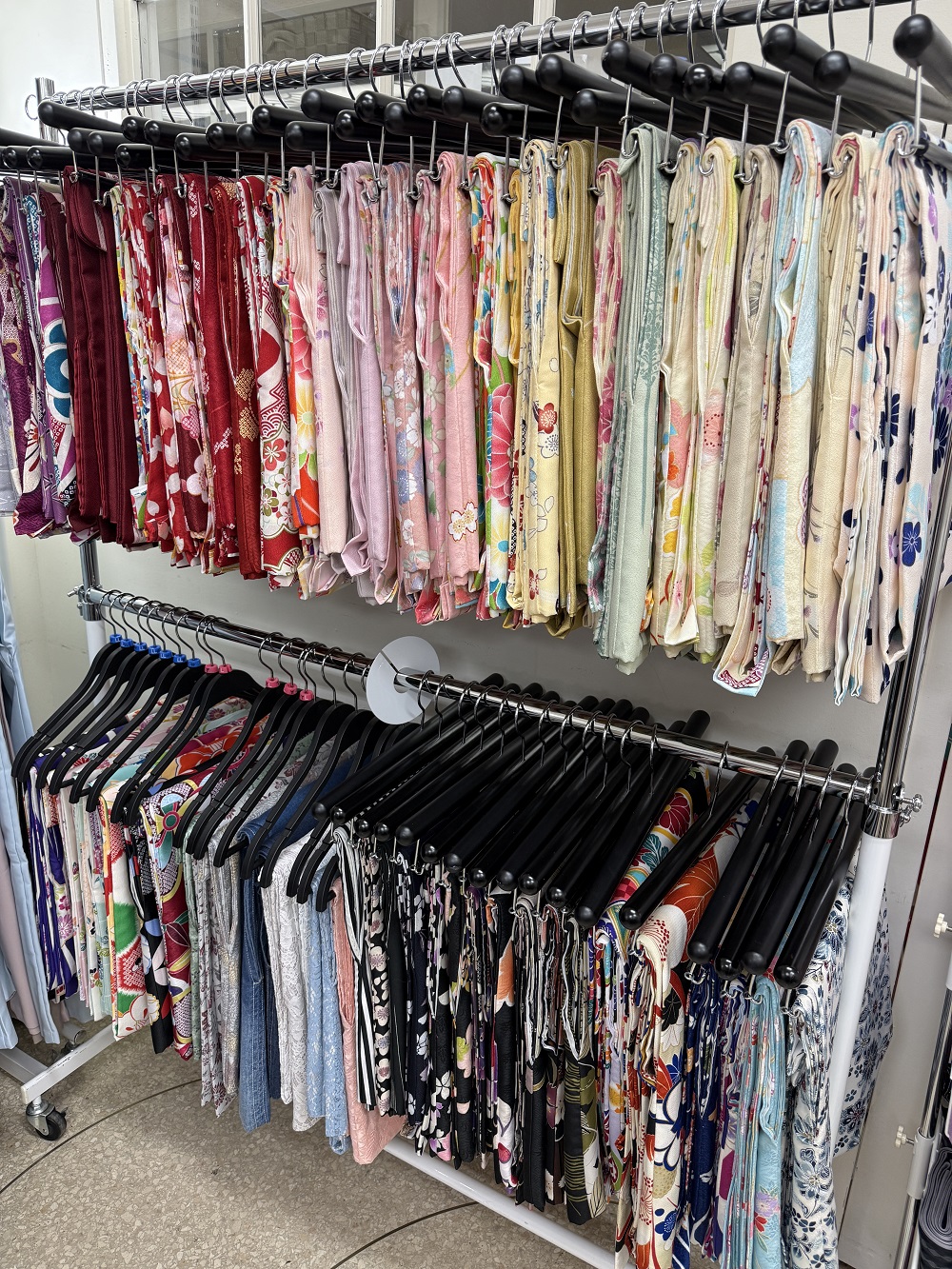 コーディネートは自由に好きな着物・帯を選べます(ご希望の方にはスタッフもお手伝いできます)