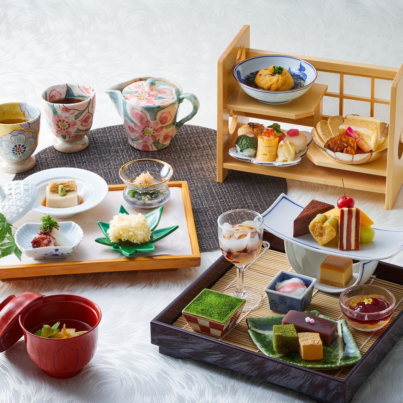 「夏の茶事 和のアフタヌーンティー」(+¥4,900)5Fの日本庭園もご覧いただけます
