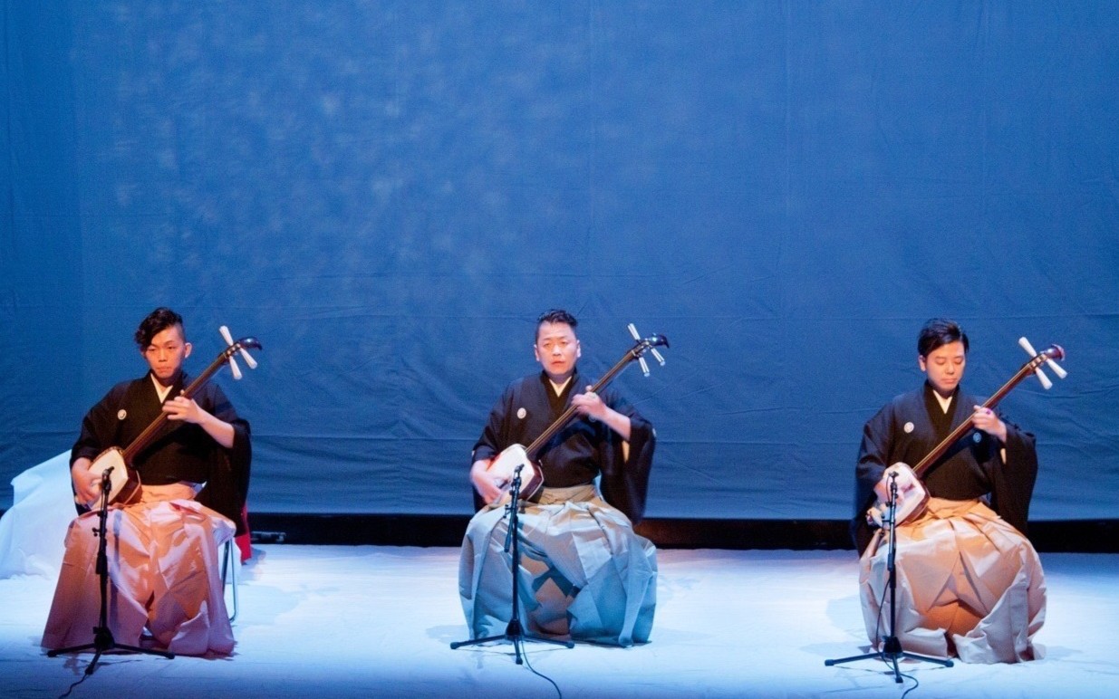 津軽三味線は撥(バチ)を叩きつけるように弾く打楽器的奏法とテンポ速く音数が多い楽曲が特徴。