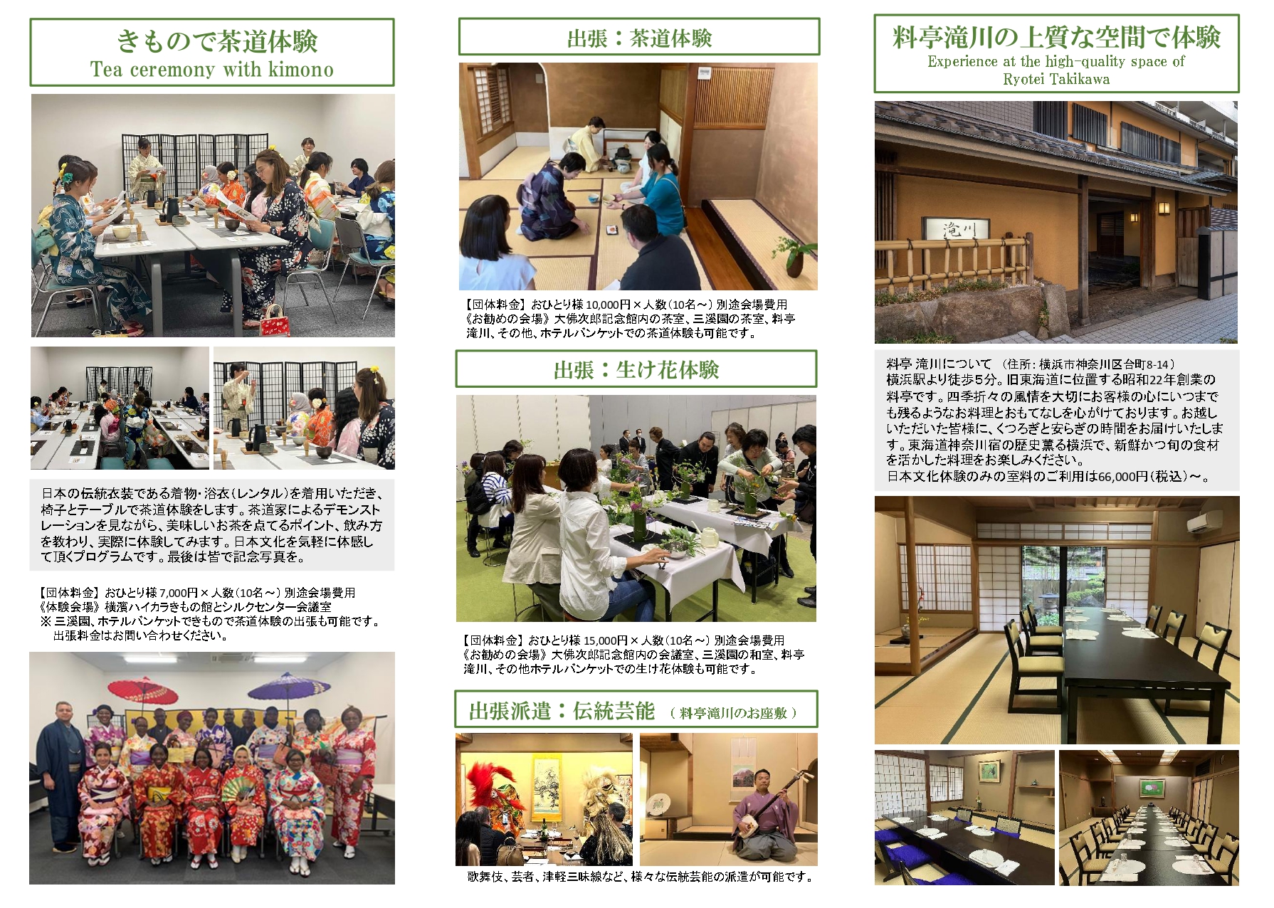 最近は客船で訪れる外国人観光客が横浜も増えてきているので、どこか上質な空間で日本文化体験ができないかと考えていました。やっと弊社が見つけた上質な空間は横浜駅から5分ほどにある料亭滝川です。