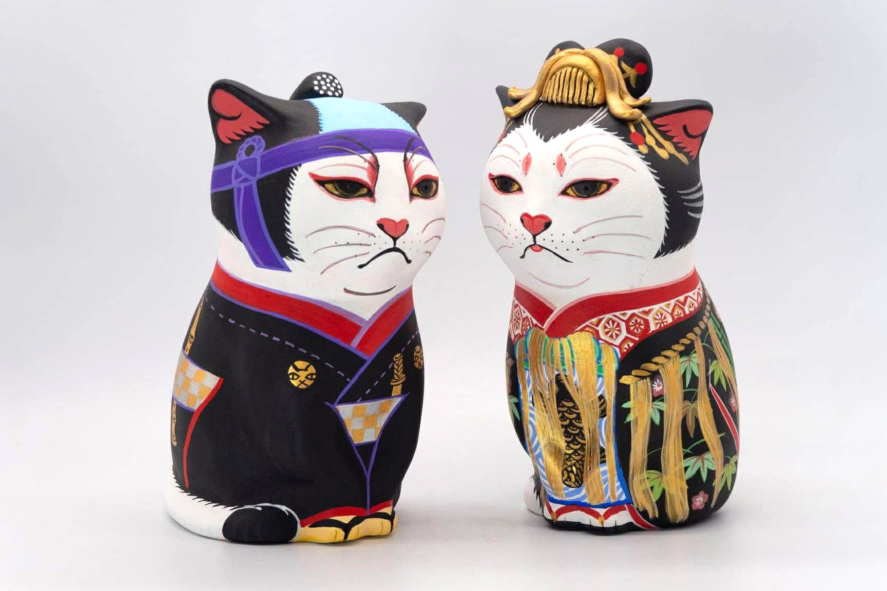 その強烈なインパクトは、発表とともに大反響を呼び、以後、毎年のように各地の百貨店で個展を開催し世の愛猫家を虜にしてきました。変身肖像彫刻カオデカクンは、お雛様のような華麗な衣装に身を包んだかと思えば、仏像やアマビエ、果ては妖怪にも変身。さらには野球選手や東京都主税局の局員にもなり、まさに百花繚乱、変幻自在なのです。