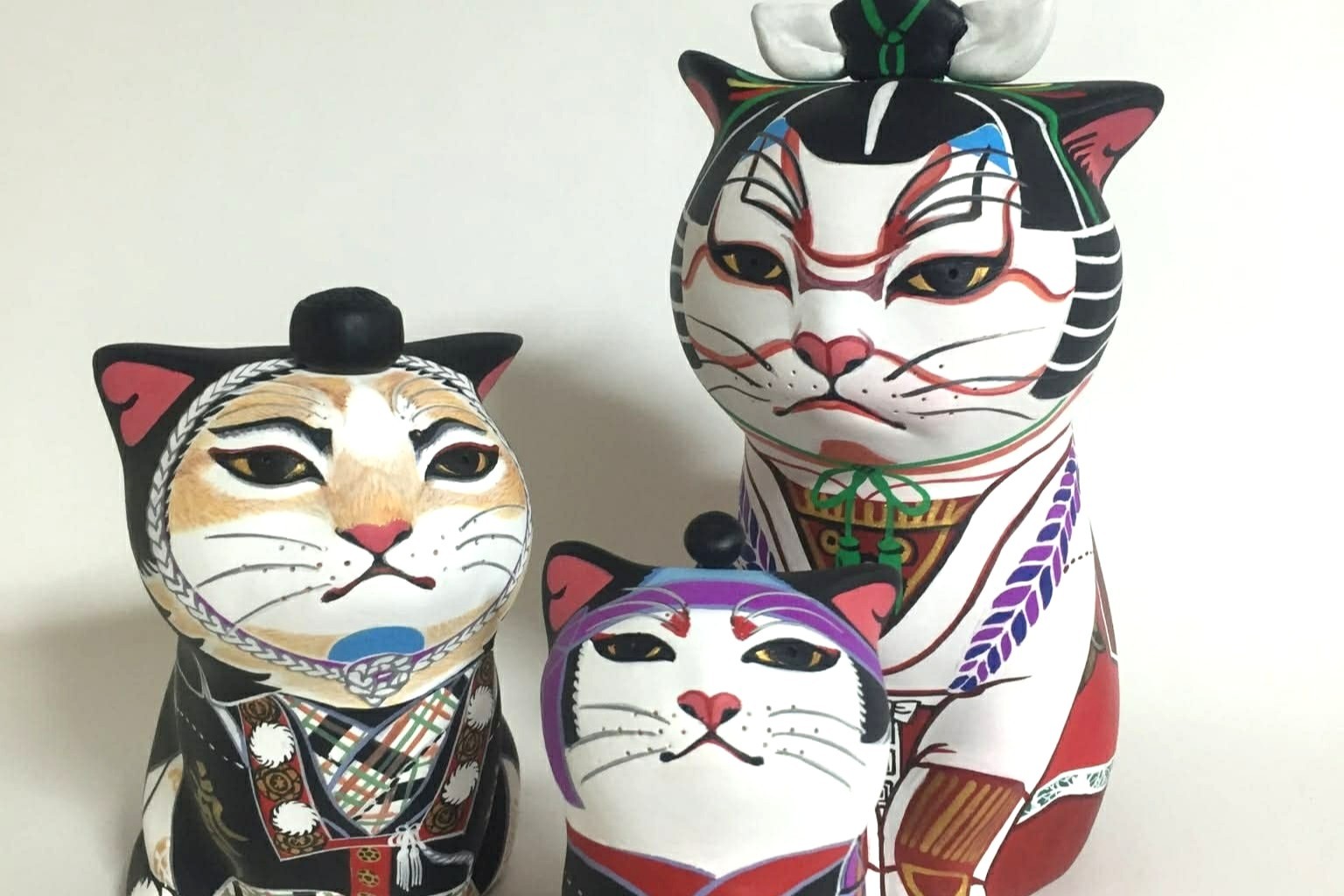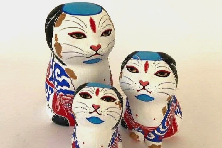 その代表作であるカオデカクンは猫をモデルに素焼き(テラコッタ)で制作する造型作品で、顔や毛並みはすべて手筆で描き込まれます。
