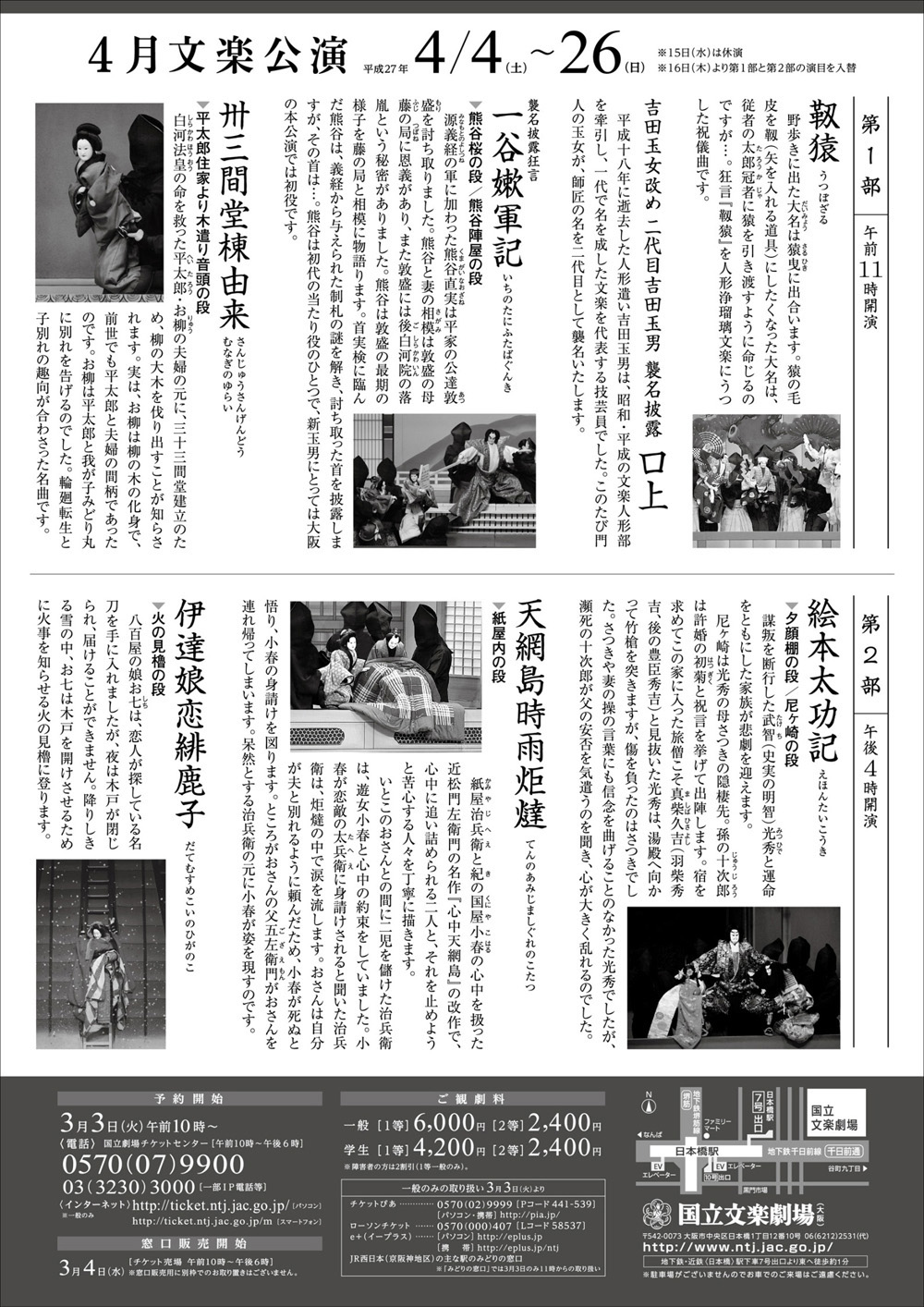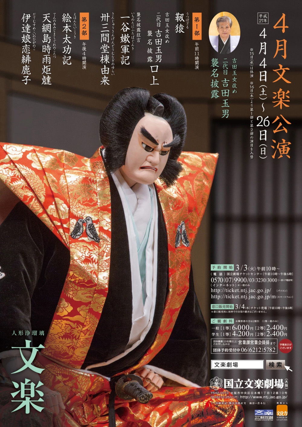 【4/6】四月大阪 文楽講座&鑑賞(二代目吉田玉男襲名披露)