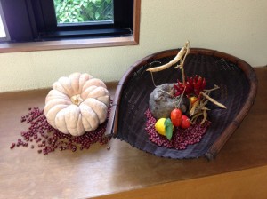 赤唐辛子も赤色が厄除け。そしてやはり身体を温めるため。オレンジ色のものはからすうり。別名、ねずみうり。先に書いたように、中国の天体思想では、冬至を暦の起点と考えられているので、ねずみは子(ね)で、十二支の始まりも子(ね)、なので、ものごとの始まり、起点を、ねずみうりで表しています。だから、冬至で使う場合、烏瓜(からすうり)といわずにねずみうりと呼びます。(ここはちょっとむずかしいのですが、、、面白いところですね)