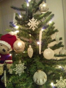 わが家のクリスマスツリーはグリーン・ホワイト・シルバーでアレンジ。