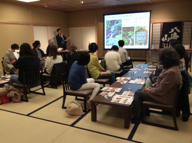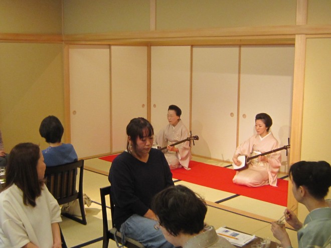 4月11日(土)の夜は大人向けのおもてなしエクスペリエンス。新潟の高級地酒「八海山」の蔵元による日本酒セミナーと「きき酒」。さらに日本酒を飲みながら新内流しの三味線の音色も楽しむという贅沢な企画でした。