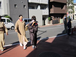 おかげさまで当日は晴れ、絶好のきもの日和になりました。今回の企画のお客様は笹島先生の着付教室での生徒さんです。実際に笹島先生が芸者の恰好になって芸者の着付けを学ばせるとは全く知らず、登場もサプライズでした。普段はみることのない芸者の着付けを先生とともに学ぶ。とても本質的で、楽しい会になりました。